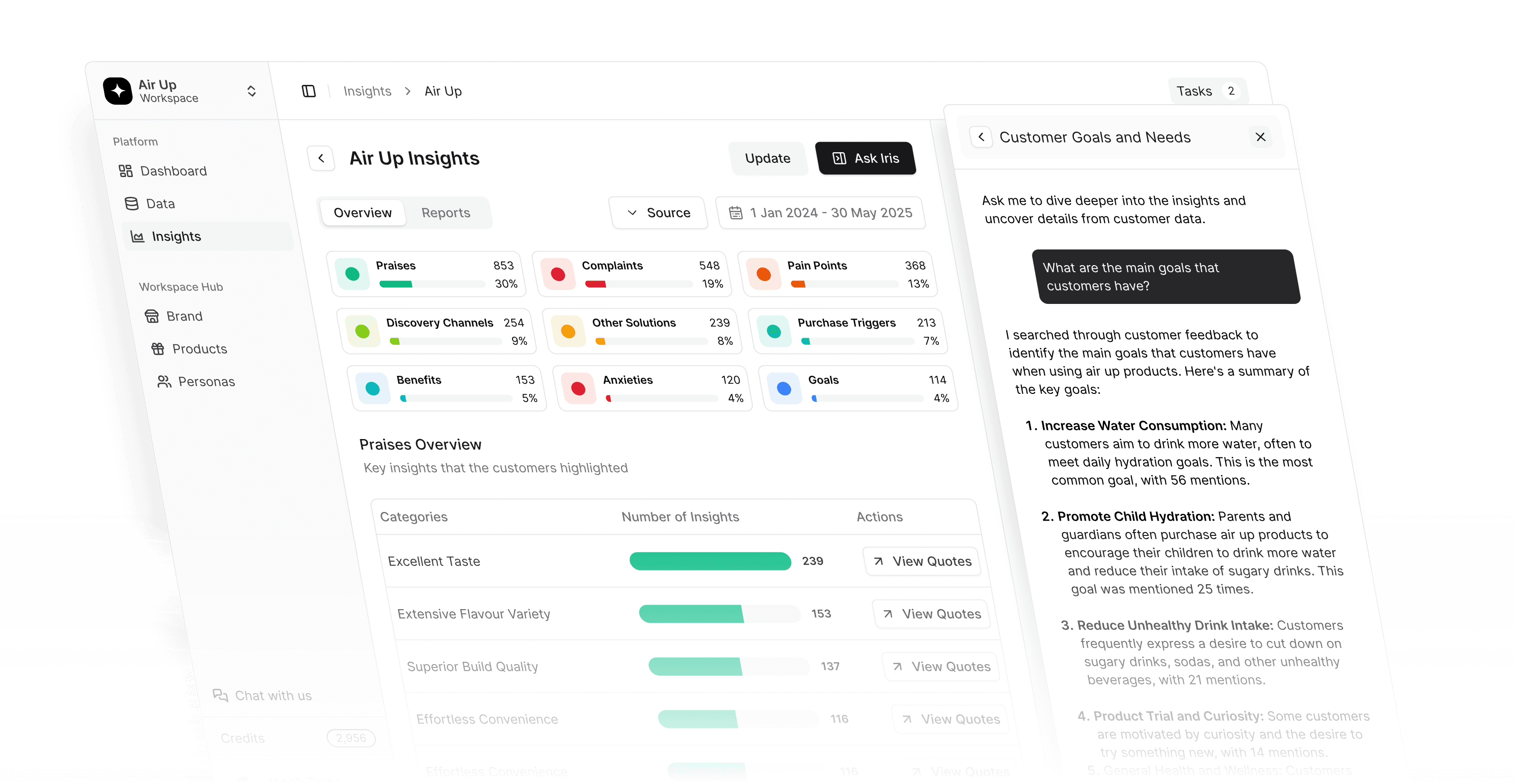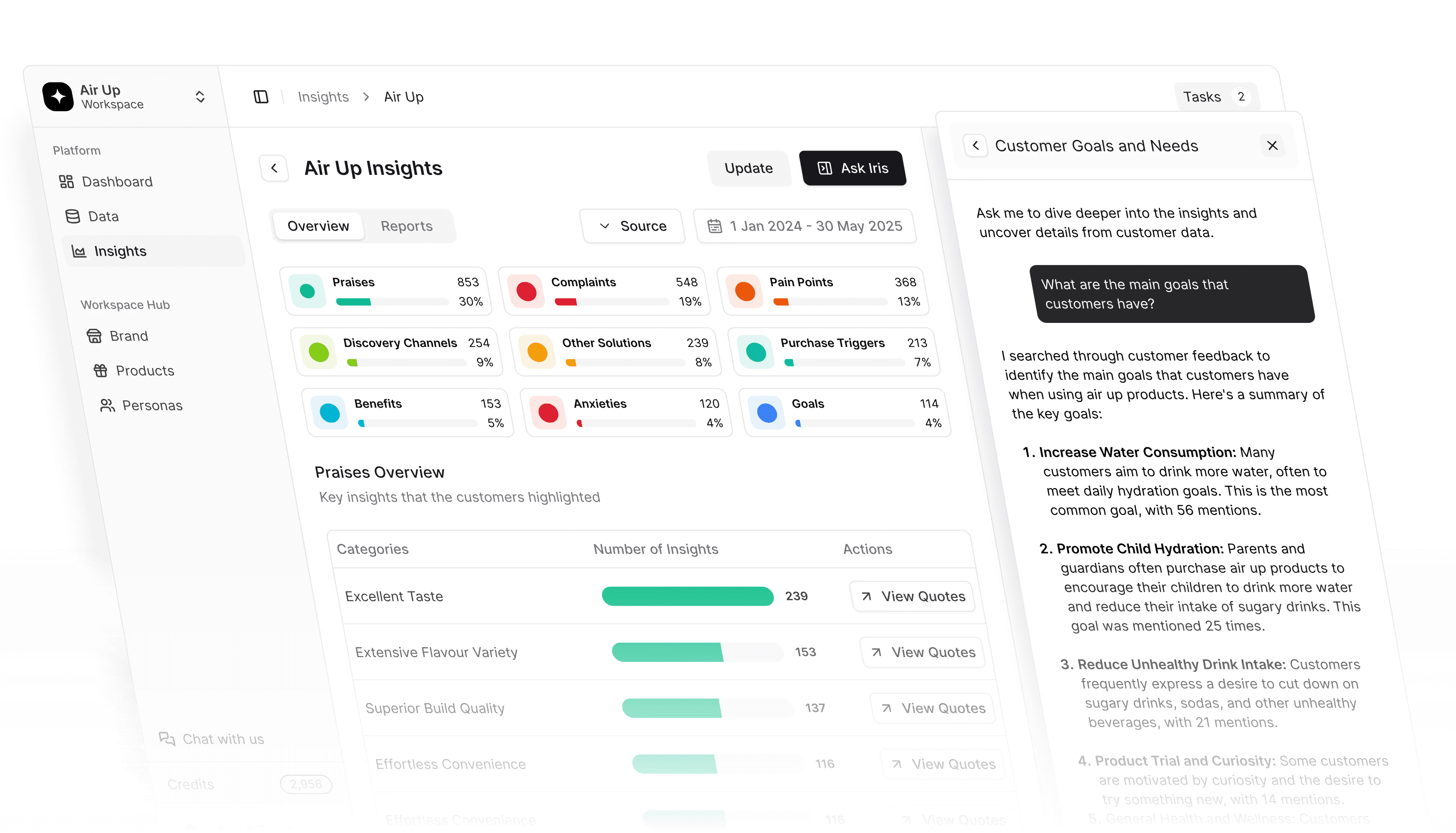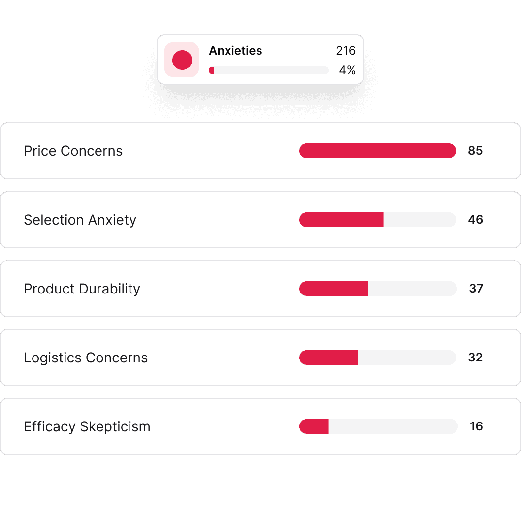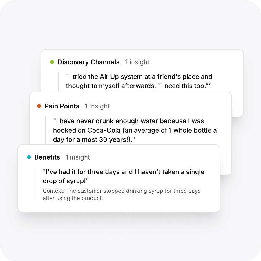 AI trained specifically on marketing workflows. Extract customer language, emotional triggers, and hidden anxieties or objections—backed by real quotes you can trust.