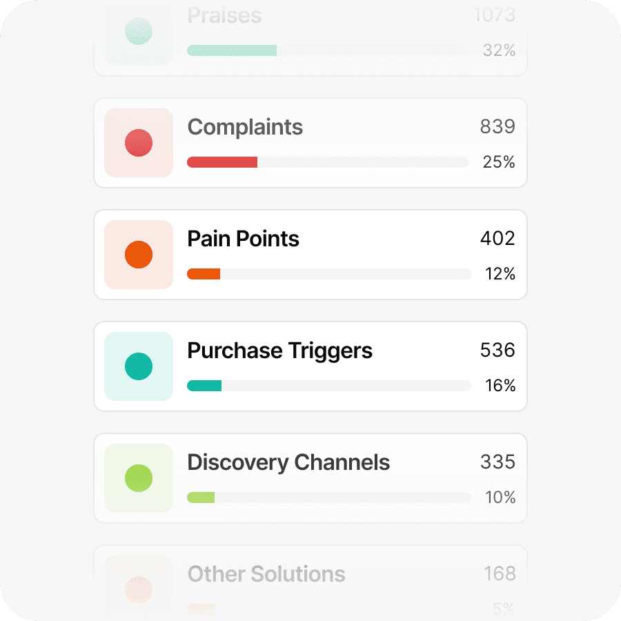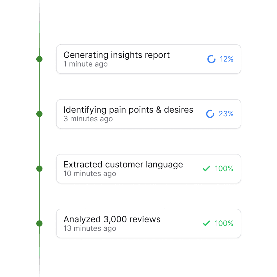 Go beyond tracking competitor ads—understand their customers' actual experiences. Extract the specific complaints, unmet desires, and language patterns that help you get ahead.