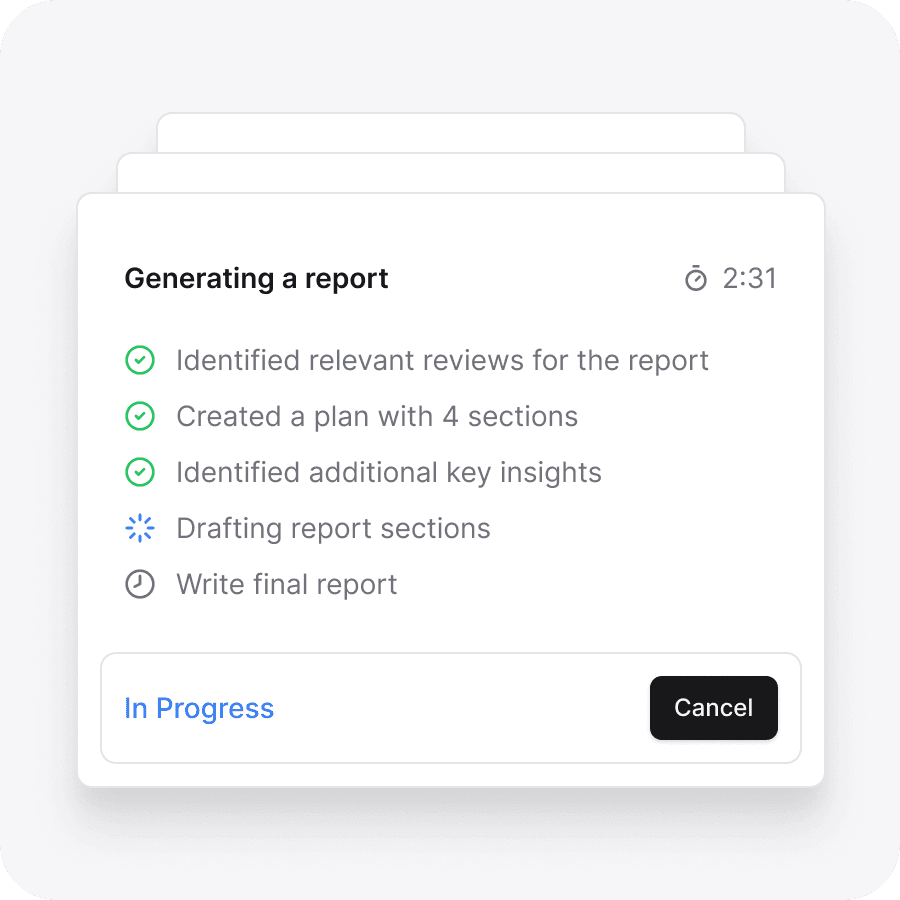 Turn thousands of reviews into actionable insights instantly. What used to take days of manual analysis now happens automatically—with the same depth and quality.